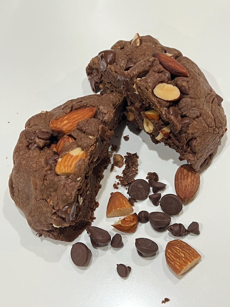 Rich chocolate dough loaded with melty chocolate chips and crunchy roasted almonds — pure chocolate bliss in every bite!